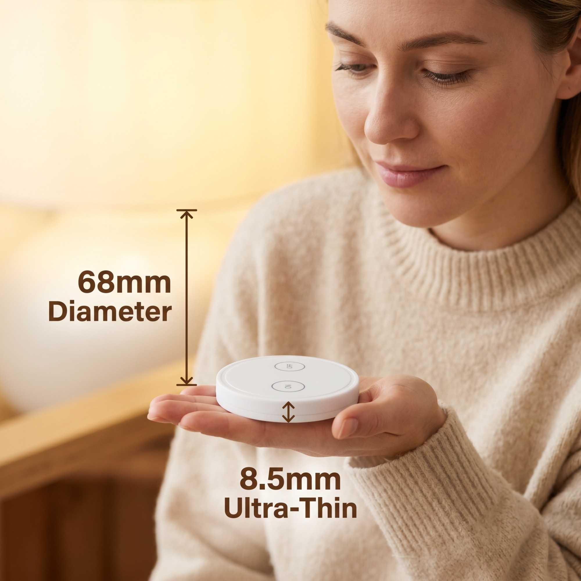 Compact & Modern – 68×68×8.5 mm sleek design fits any décor.
