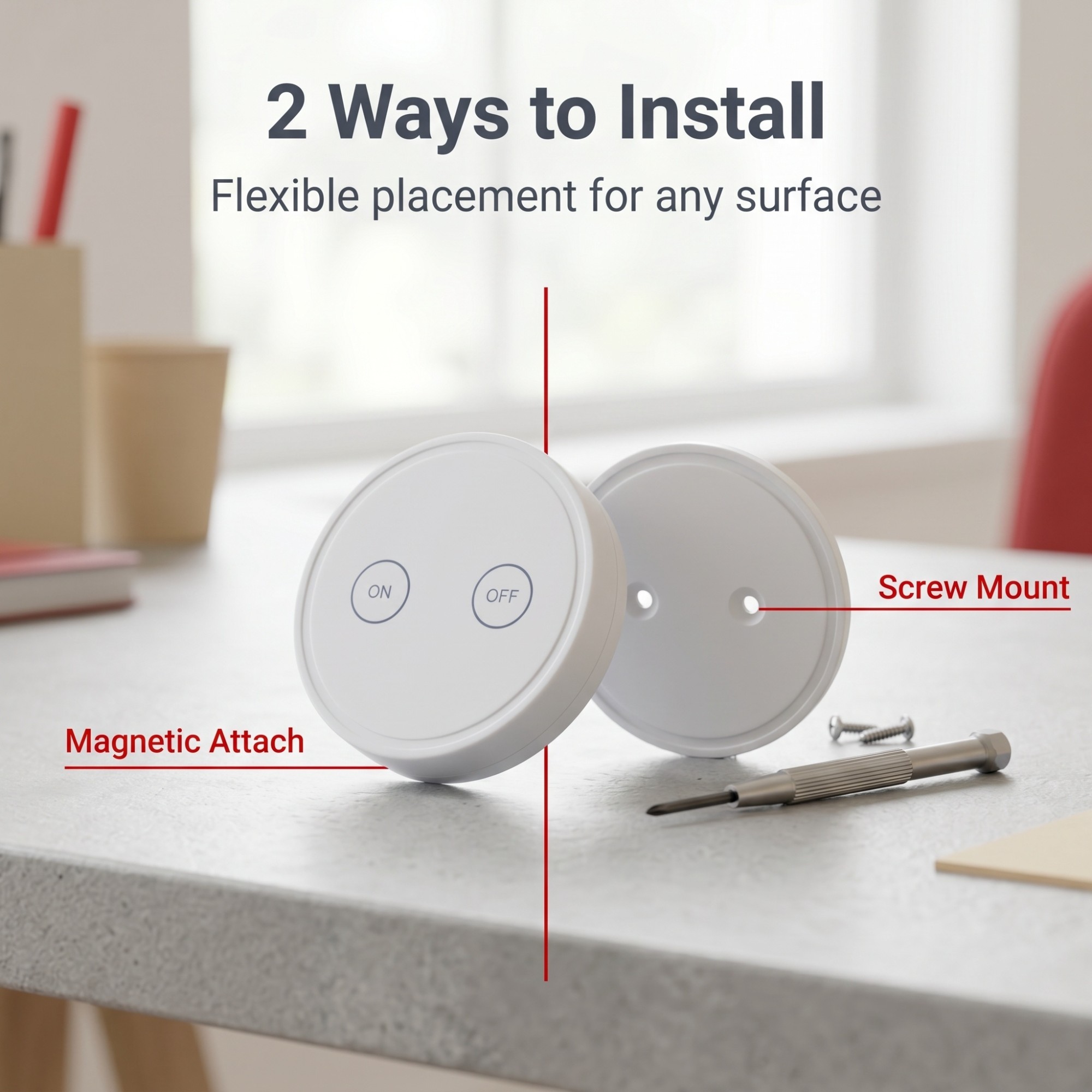 Magnetic Mounting Base – Included adhesive/ screw‑fix wall base holds the switch securely via magnets – easy to detach and reposition. No hardwiring needed.
